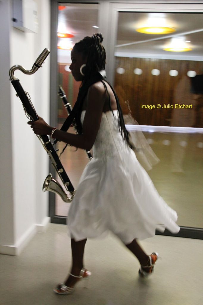 - Afro Cuban All Stars musician carrying instruments backstage at the Barbican, London, as part of La Linea festival, April 2012