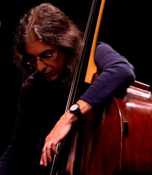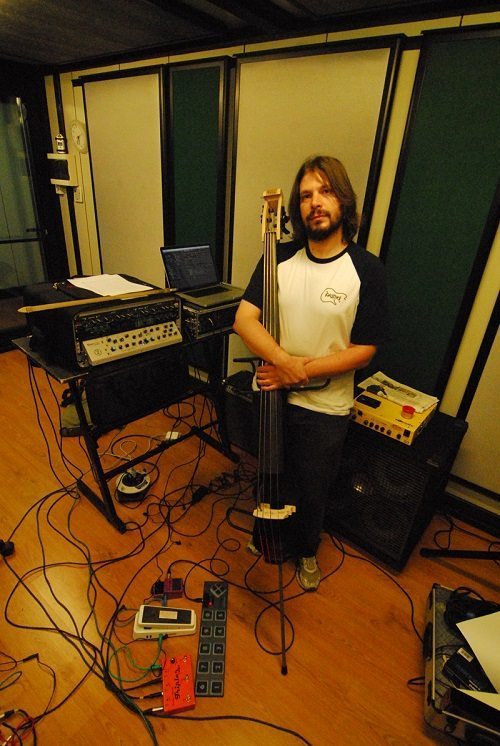 Challenging listening, for sure. And isn’t a challenge nice from time to time? A paddle thorough turbulent waves, a higher climb than the quotidian, a flight through stormy skies – thus the appeal of Daniel Barbiero and Cristiano Bocci’s compositions for double bass and electronics. Daniel Barbiero - photo by BOSSIThese are, on the face of it, double bass solos morphed, looped, sequenced and embellished with electronic elements, but such is the synthesis between Barbiero and Bocci, it is difficult to know exactly where the original solo ends and the subsequent electronic trickery begins.