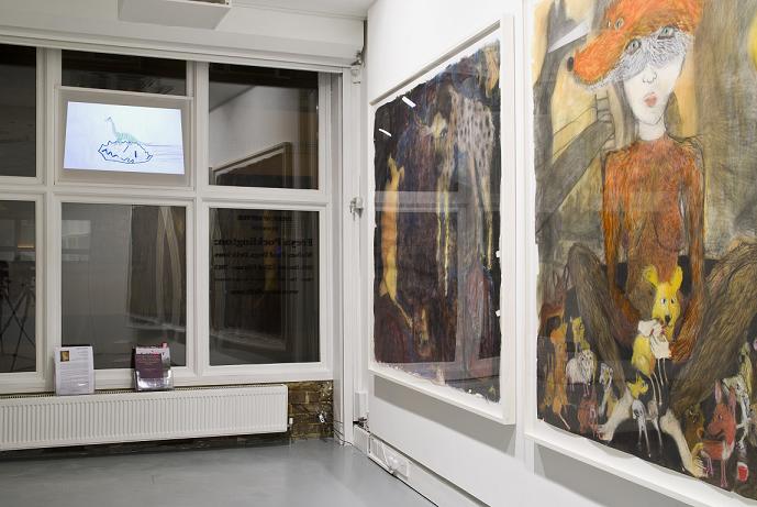 Not the largest of exhibitions, with only seven pieces in the entire show, of which one was unceremoniously displayed in the bar/office area. Nevertheless, Pocklington’s work packed enough punch to equal a whole 50-piece graduate show. The artworks hung grandly in the modest space of the Breese Little Gallery, being taller than myself standing in heels and infinitely more satirical and complex.