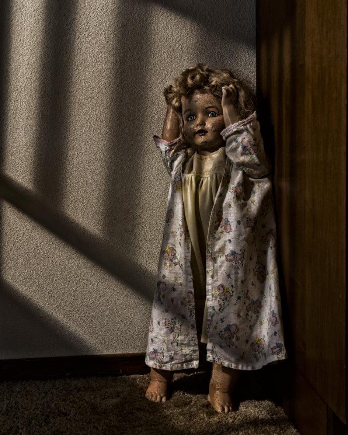 I use a SONY a7r, on a tripod. My favorite lens is the Zeiss 24-70mm. I use natural light, and if needed, a bounce board and diffuser. It’s a simple set up I can take with me and use anywhere, although I tend to shoot in rural areas, I don’t like attracting attention. The dolls are small, but they take a long time to set up, and since I use available light, I may need to wait until the light is right.