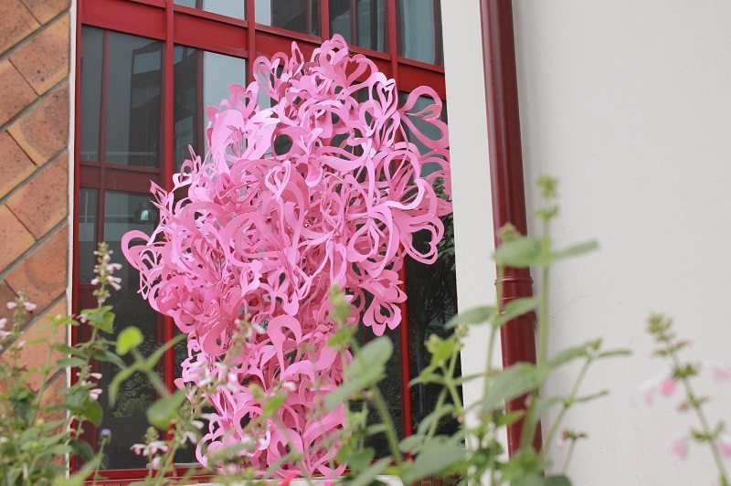 Perhaps fittingly, Loza abandons only the frivolity and effervescence of her botanical creations for clean lines and, frankly, dull structure at the entrance to the Hossegor’s golf club. ‘Passage’, a scrolled and pointed sheet of steel is welded onto a roughly polished base, presenting a two-metre lump of what could be a corporate logo in three dimensions. After the quirks and humour of her works elsewhere, it verges on insult. If metaphor is slightly lacking in certain of Loza’s displayed works, it is not the case here. Golf – corporate and boring? The implication is clear.