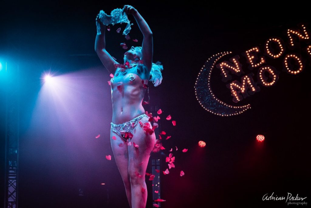 [dropcap style=”font-size:100px; color:#992211;”]F[/dropcap]ast building a reputation for putting on burlesque shows with more glitter and glamour than the quotidian, The Neon Moon Cabaret Club brings escapism and erotica to select venues across the UK.