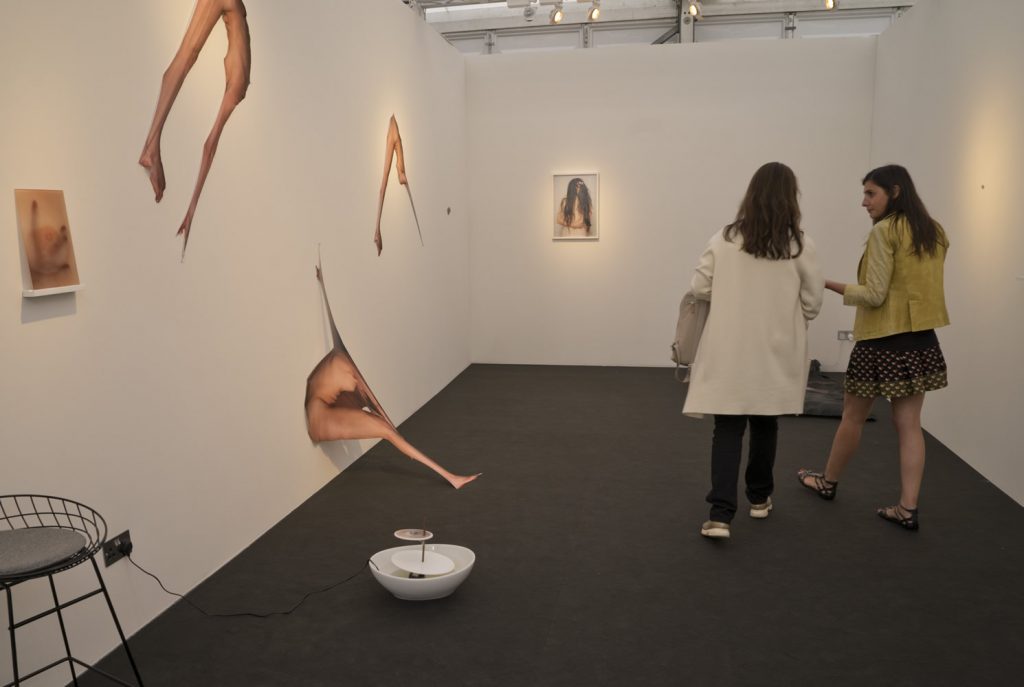 The Peckham 24 group of artists produce one of the fringe shows of the Fair next to the Bussey building in Peckham Rye, south London, and two ex-squat houses next to the other spaces. As you enter one of them you are almost flooded by a mountain of sand, which underpins Baud Postma’s desert landscapes. His set began as a group of images shared on his Facebook page over 10 years ago, and the rediscovery of these old photographs prompted him to consider photography’s relationship with authenticity, using the desert as a metaphor for memory.