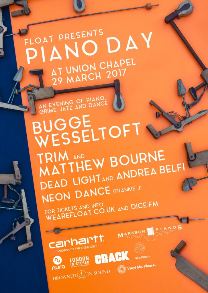 FLOAT presents Piano Day at Union Chapel on March 29th with Bugge Wesseltoft, Trim, Matthew Bourne, Dead Light, Andrea Belfi and Neon Dance (Frankie J)