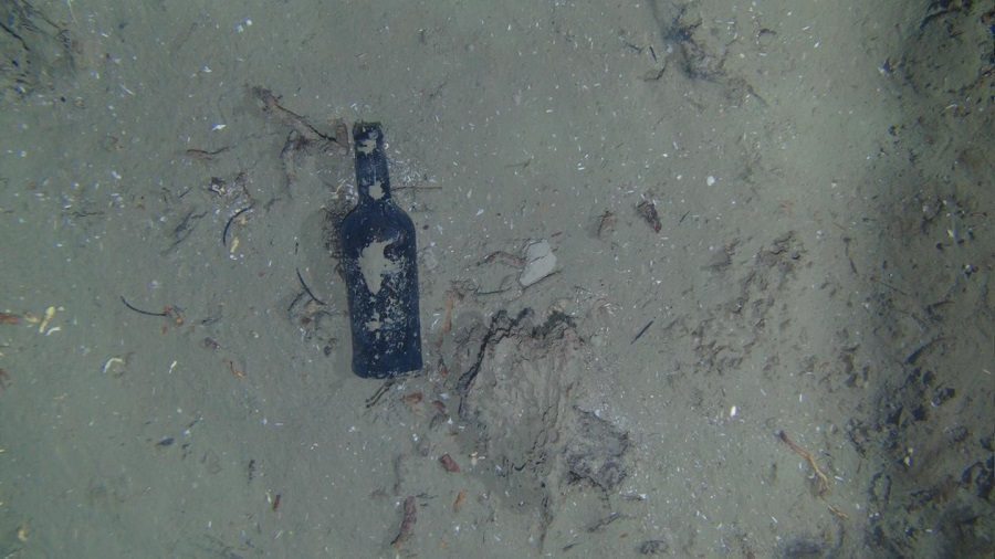 One of nine glass bottles observed at the site of a centuries-old shipwreck off the North Carolina coast. Image: WHOI