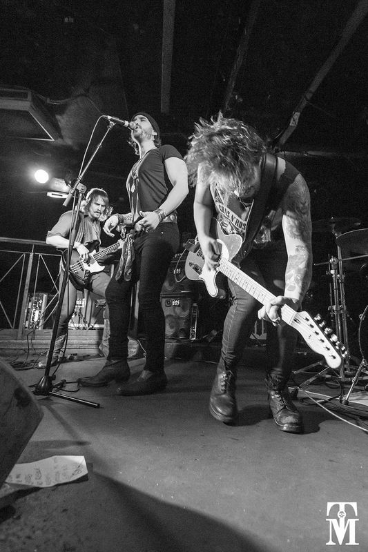 With a touch of the 70s porn king about him, Aaron Plows’ bass guitar was strapped to his skinny snake hips, getting it on as he gyrated and grooved against it. Lead guitarist, Jack Fawdry stamped his feet and worked up into a whirling crazed dervish pumping out sleazy riffs while drummer, Steve Corrigan kept it all effortlessly together.