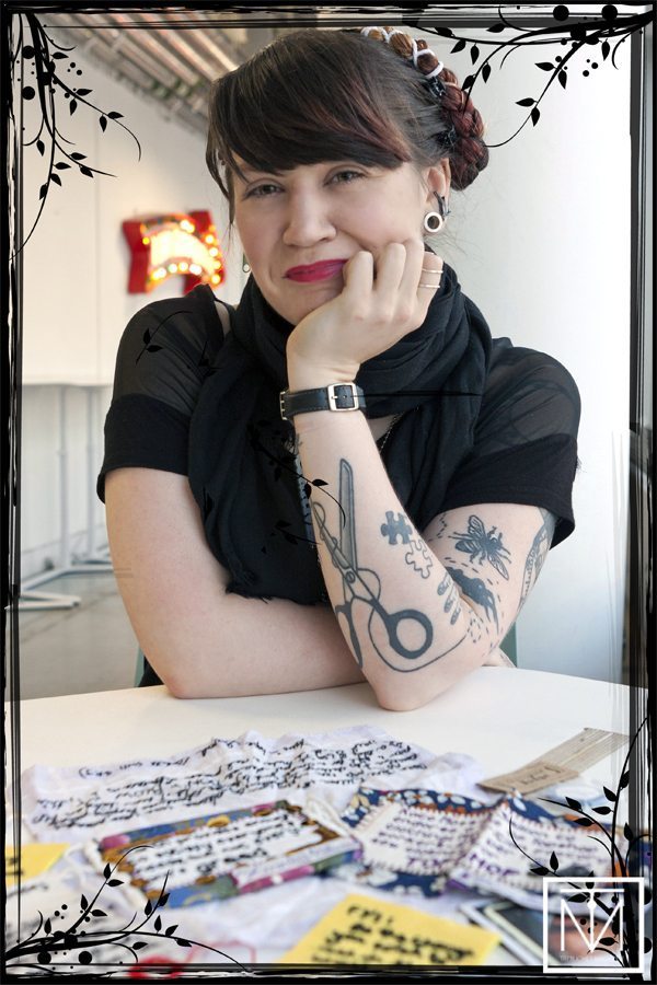 We always try to do stuff that’s repetitive so it helps with meditation and it takes a while to do so most stuff is cross-stitching and hand embroidery. With hand embroidery you can use your own handwriting so people connect to it more and it’s very repetitive. The same with cross-stitch, it’s nice and small.
