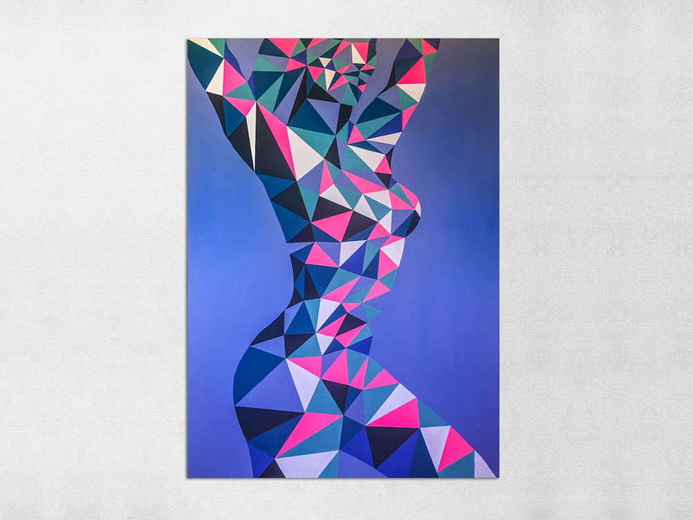 With her body navigating its way across her pieces, Cianciulli began to assess ways to incorporate the performative element into a flat painting. Experimenting with augmented reality allowed her to combine the different practices, creating her own parallel universes that a viewer can access through their phones as well as in physical print. This format allows Cianciulli to explore the concept of the female body as a decentralised app where content is often already sexualised, and invert the platform to allow the audience to define the interaction, based on their own interpretation of the female body presented.