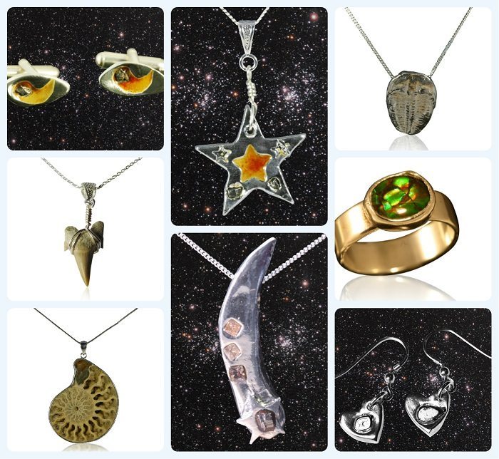 Since founding Jurassic Jewellery in 2006 Ian Barrett has used moon dust, Mars dust, amber, and moldavite, as well as authenticated meteorites (mainly found in North African deserts) and fossils from dealers all over the world in the space-inspired, psychedelic jewellery he makes by hand.
