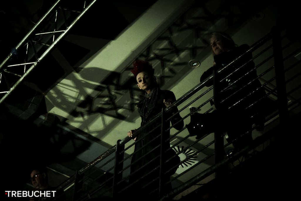 Watching the acolytes pile into the Islington academy one witnessed a grimey cinematic mis en scene unfold; exposed metal, washes of bacterial neon, blackened grates and grills, oil shadowed denim, and that which isn’t shaved, pierced, or tattooed, is knotted with grease and grinning. They call it industrial but it’s much deeper than that.