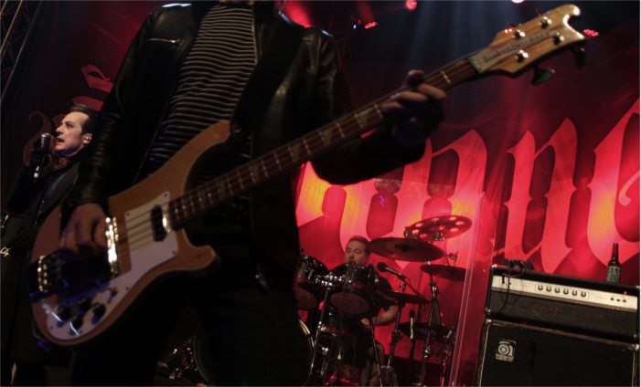 Vanian wandered towards the front of the stage holding something small and red, and casually almost whispered into his mic ‘Is she really going out with him?’. Of course all hell broke loose and the already noticeable mosh pit immediately quadrupled in size. ‘New Rose’ was followed by ‘Love Song’ and the mayhem continued, until the Captain announced that he was cream-crackered and things slowed down slightly.