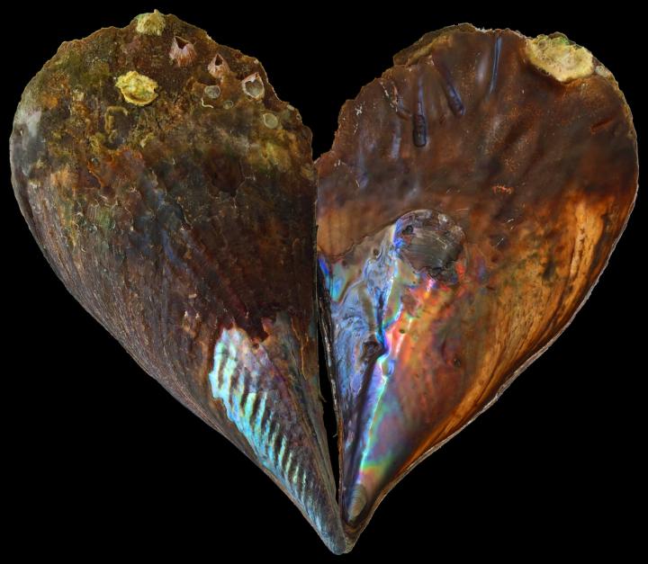 “We can very accurately correlate nacre tablet thickness with temperature,” says Gilbert, explaining that mother-of-pearl is formed as mollusks lay down microscopic polygonal tablets of the mineral aragonite like brickwork to build layers of the shiny biomineral.