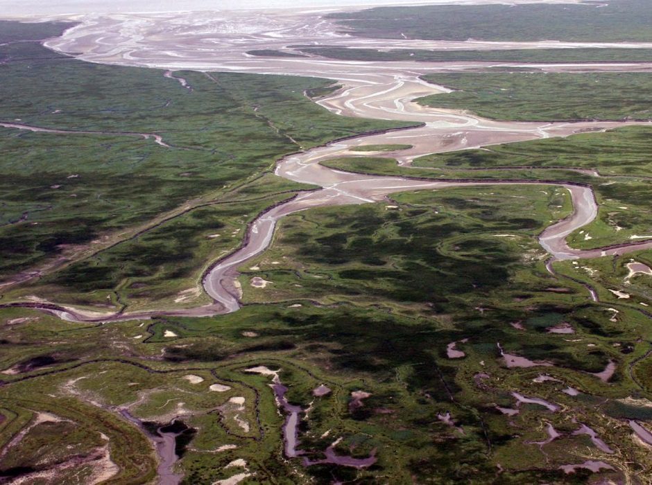 Photo: Southern Netherlands. Remnants of a breach made in February 1584, now a tidal channel. The marshland visible in the picture is former arable land. By A. de Kraker