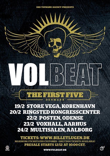 [dropcap style=”font-size:100px; color:#992211;”]J[/dropcap]anuary 15 – Danish metal band Volbeat has revealed the band is in the studio recording a new album for release in Spring, 2013.