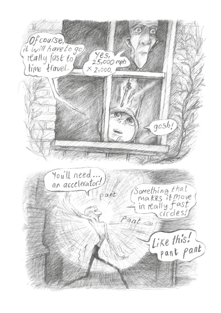 Set in the north of England in the 1970s, we’re served a slice of family life both whimsical and grim. Hugo’s family (two older siblings, and his mum) clearly love each other, but aren’t above typical family squabbles and teenage rebellion. After a tragic event, Hugo’s family move from the country to the city, much to his dismay. It’s here we meet their new neighbour, Icky, and learn about the Wolfman next door, who everyone knows likes to eat kids. To say much more about the story would spoil it, but it does involve a time machine, several rooftop journeys, and an adventure through an ogre’s lair.